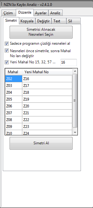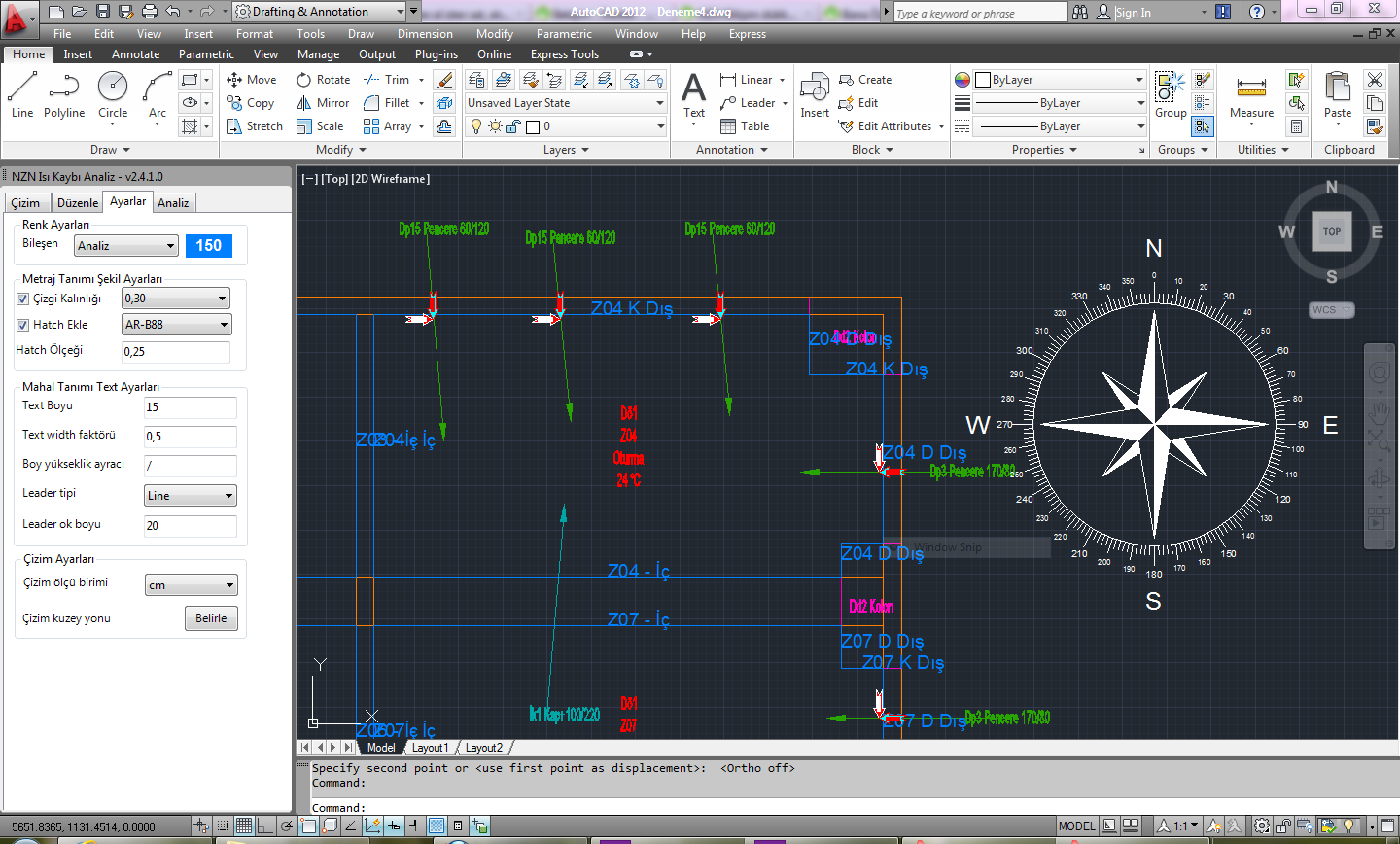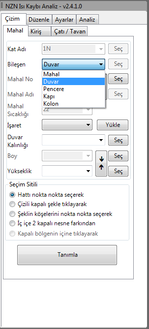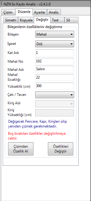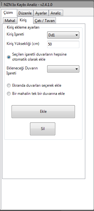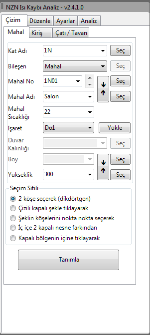 Program analiz yaparken pencere yerlerini bularak, buraya çizimde kullanılacak işaretler yerleştirir. NZN Isı Kaybı Çizim yazılımını kullanarak bütün mahal bilgilerini, petekleri veya fan-coilleri otomatik olarak tek tuşla çizebilirsiniz.