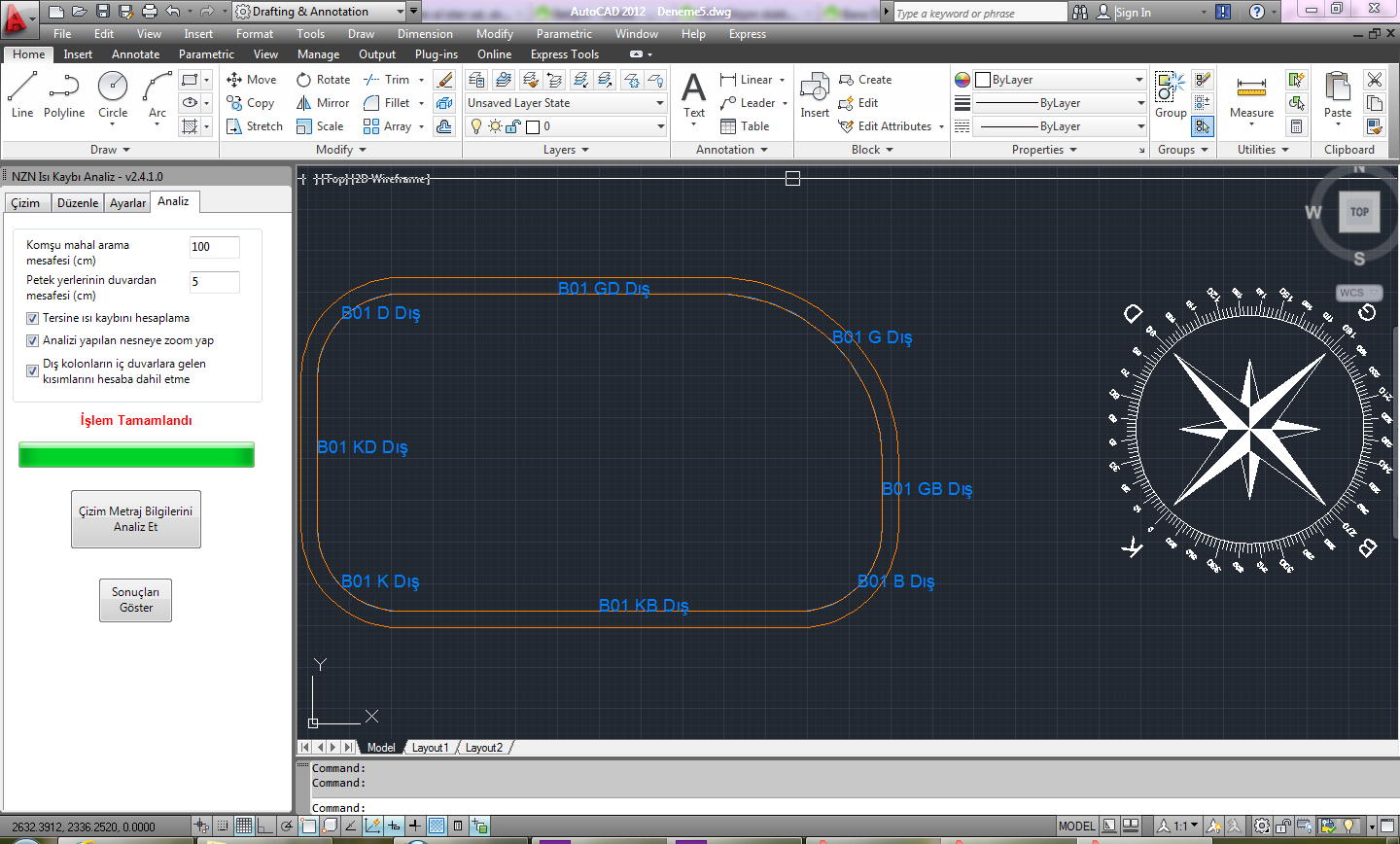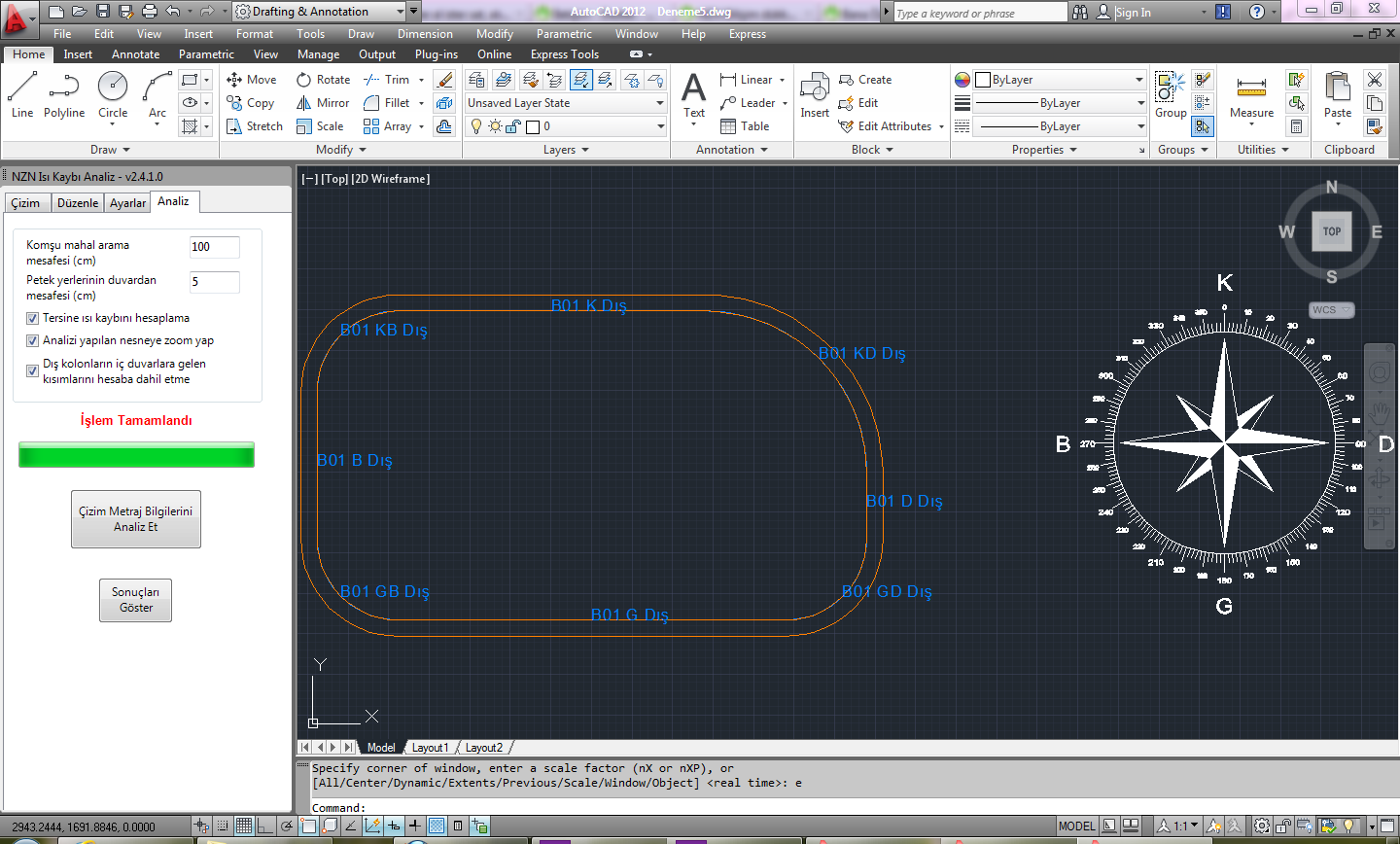 NZN Isı Kaybı Analiz yazılımı AutoCAD içerisinde proje üzerinde ısı kaybı hesabında kullnılacak olan mahallerin alanı, yönü, pencere, kapı gibi bileşenlerin alanı, minha edilecek miktar, komşu mahal sıcaklıkları, dış sıcaklıklar gibi bütün gerekli bilgileri otomatik olarak çok kolayca çıkartmanızı sağlar. Daha sonra bu bilgileri Microsoft Excel formatında dışarıya aktarır. NZN Isı Kaybı Hesap yazılımını kullanmanız durumunda dışarıya aktarılan bilgilerle kolayca ısı kaybı hesabı yapılır.