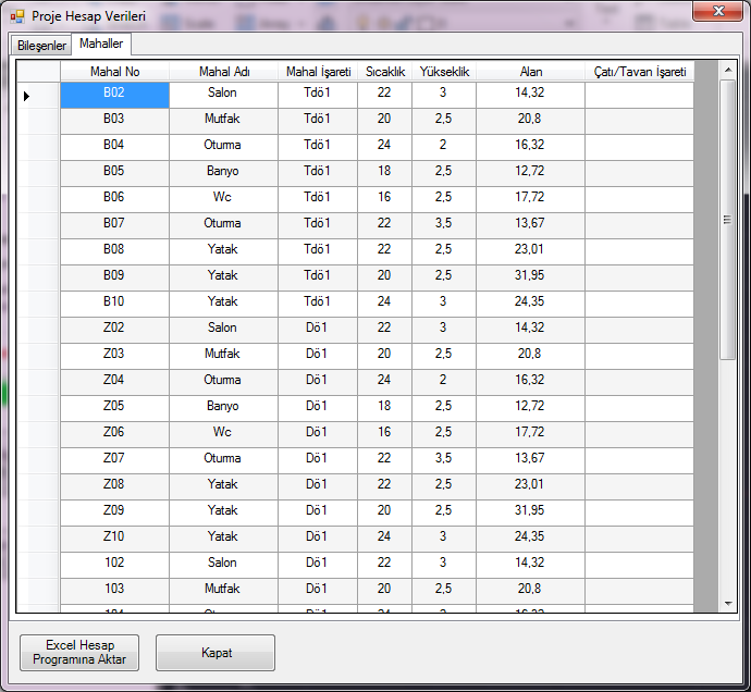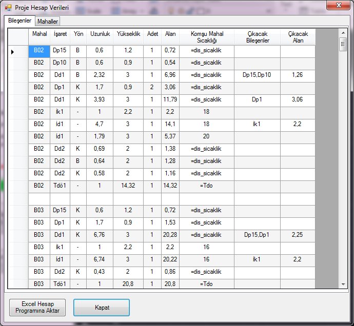 - Bütün minhaları, yönleri, komşu ve dış mahal ilişkilerini, sıcaklıklarını otomaik olarak bulur ve Microsoft Excel programına aktarır.